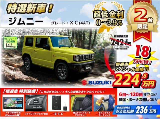 新車カイドキ|スズキ ジムニー XC AT車 新車ビックリ値引き 静岡県掛川市 松下モータース |
