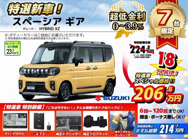 新車カイドキ|スズキ スペーシアギア ハイブリッドXZ 新車ビックリ値引き 静岡県掛川市 松下モータース |